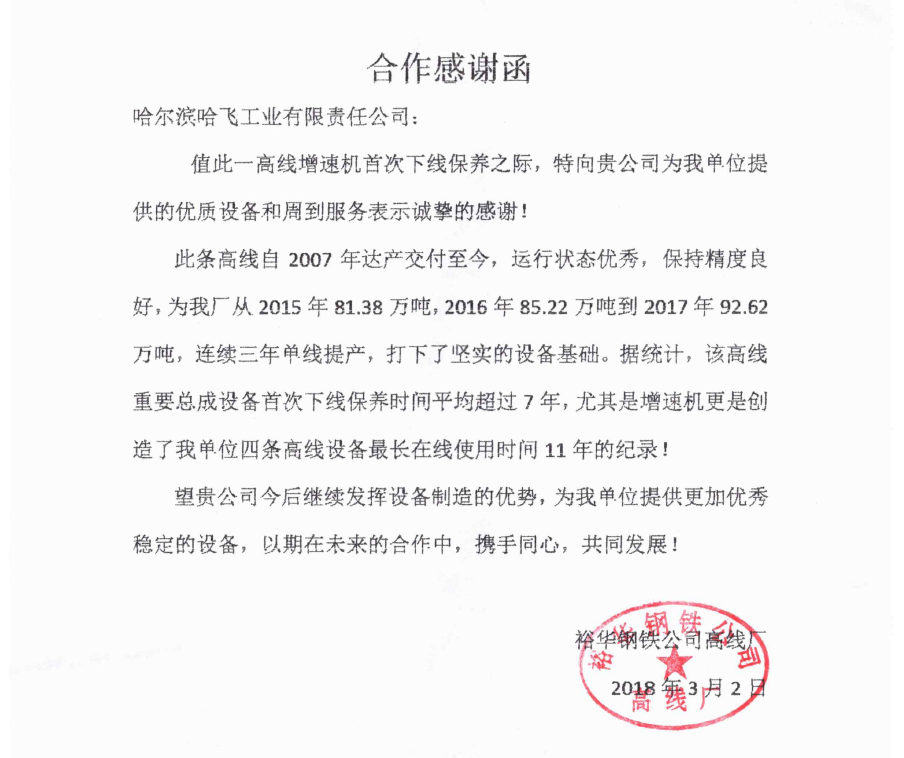 哈爾濱哈飛工業(yè)有限責任公司旗下的機電設備制造產業(yè)是目前國內規(guī)模大、專業(yè)的高速線材軋機和棒材軋機整機及備件的生產制造企業(yè)。公司現坐落于哈爾濱市平房區(qū)汽車零部件工業(yè)園B區(qū),占地面積30000多平方米?,F有員工近550人,其中具有中高級職稱的研發(fā)及工程技術人員100余人。 公司曾獲得冶金部授予的“高線軋機設備優(yōu)單位”稱號、國家技術進步二等獎等獎項,公司生產的十八項高線軋機重要部件通過了技術鑒定... +MORE